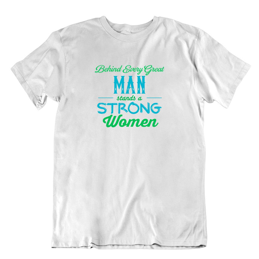 בלי להתיימר - מאחורי כל גבר עומדת אישה חזקה- חולצה מצחיקה
